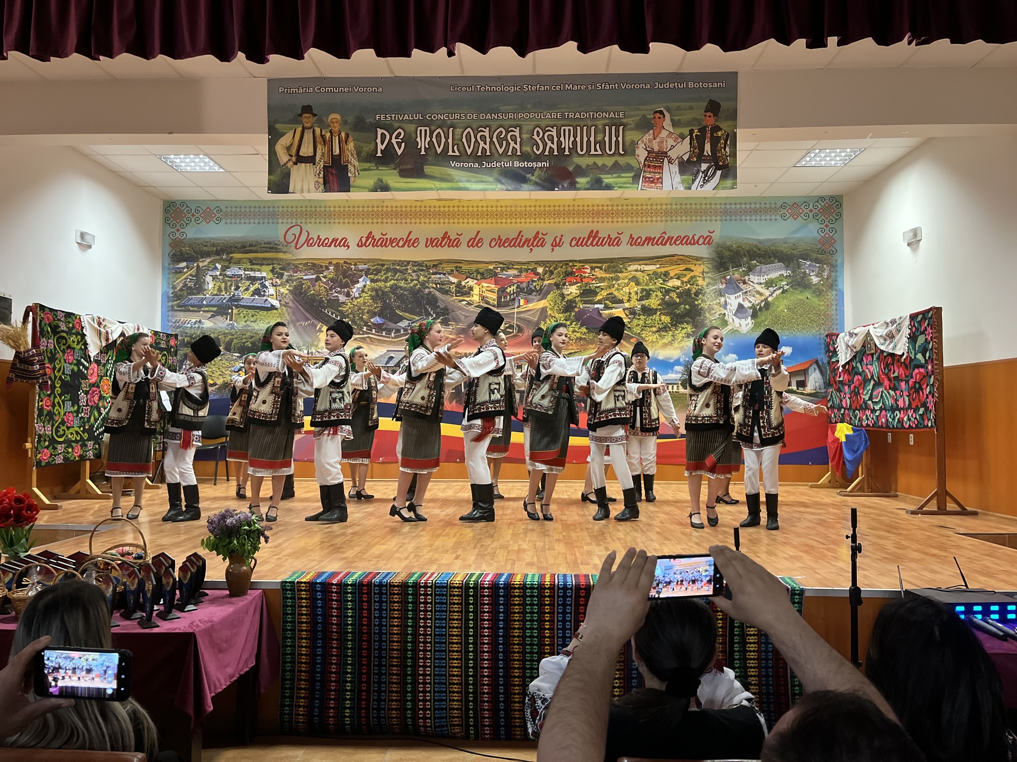 „În data de 26 aprilie 2026, Ansamblul de Dansuri Populare Românești „Rapsozii Siretului” al Casei Municipale de Cultură „Mihail Sadoveanu” din Pașcani, a participat la ediția a III-a a Festivalului-Concurs Interjudețean „Pe toloaca Satului” , desfășurat în localitatea Vorona – Botoșani. Grupul nostru a prezentat o suită de dansuri din Ruginoasa, fiind apreciat de juriu și de public pentru complexitatea dansului popular, obținând Premiul I la secțiunea 11-14 ani. Această participare marchează încă un pas important în evoluția ansamblului.