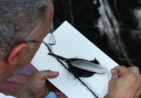 Steve Spazuk, artist canadian a dezvoltat şi perfecţionat în ultimii 15 ani de zile, o tehnică unică, care îi permite să utilizeze flacăra unei lumânări sau flacăra de la o torţa pentru a crea tablouri cu funingine. Folosind diverse instrumenre, el „sclupteaza” cu pena pe funinginea lăsată în urmă. Iar rezultatul te lasă fără cuvinte.