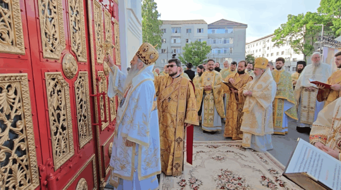După ce au intrat în biserică, ierarhii au sfințit și pecetluit Sfânta Masă, iar apoi au binecuvântat pictura interioară.