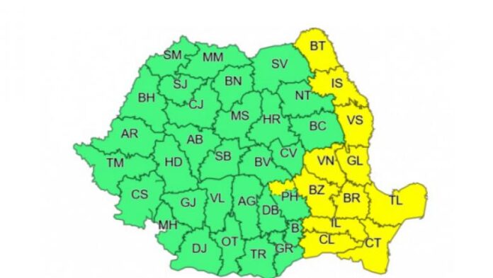 Joi între orele 13 – 21, în Dobrogea, jumătatea estică a Munteniei și în estul si sudul Moldovei vor fi perioade cu instabilitate atmosferică temporar accentuată ce se va manifesta prin intensificări ale vântului cu viteze la rafală, în general, de 60…70 km/h, vijelii, frecvente descărcări electrice, căderi de grindină, averse ce vor avea și caracter torențial. Astfel de fenomene se vor semnala și în restul teritoriului, dar pe arii mai restrânse.