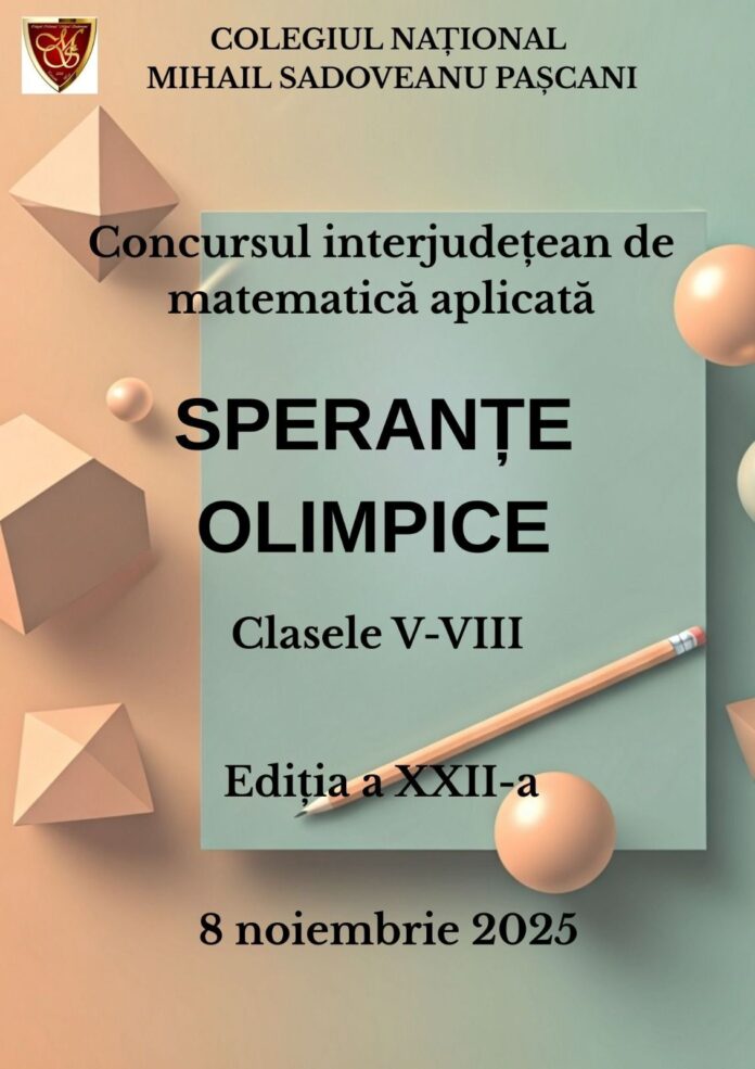 Colegiul Național „Mihail Sadoveanu” Pașcani organizează concursul de matematică aplicată „Speranțe Olimpice”, destinat elevilor din clasele V–VIII.