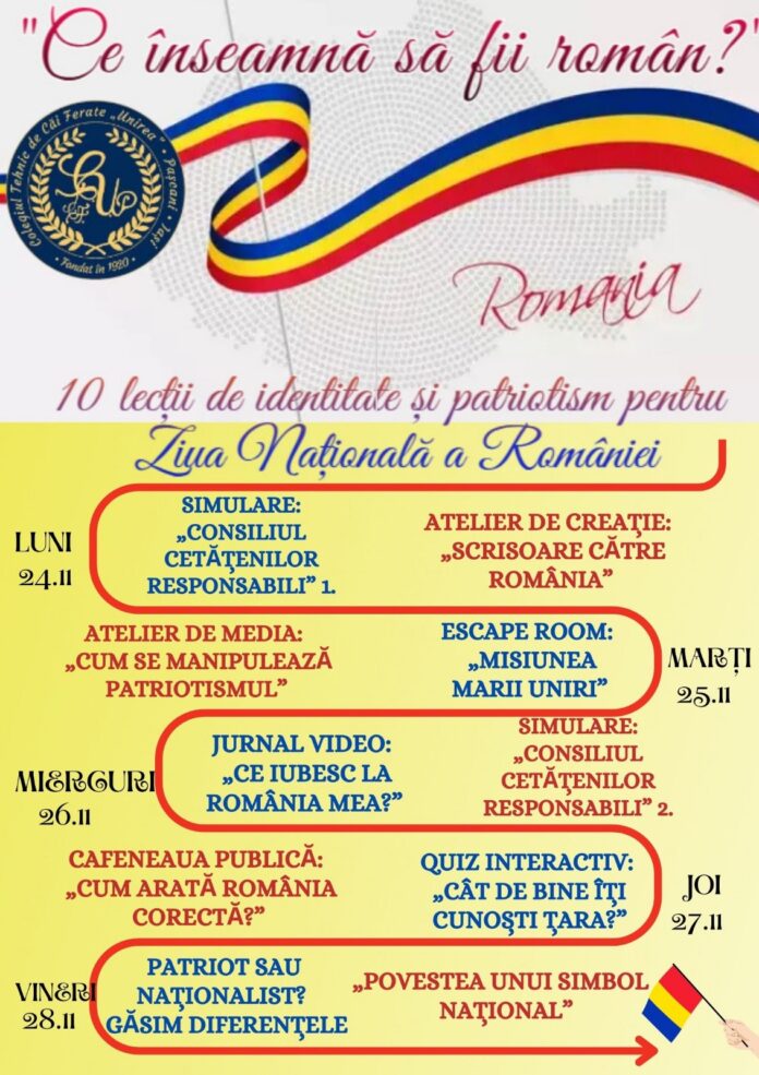 „Astăzi la Colegiul Unirea încep 7 zile de activități dedicate Zilei Naționale a României.