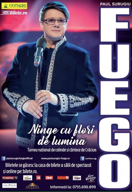 Spectacol de zile mari, in prag de Craciun, la Targu Frumos. Locuitorii din oras, dar si din imprejurimi, sunt invitati duminica, 22 decembrie, de la ora 17:00, la un concert de colinde sustinut de indragitul artist, Fuego.