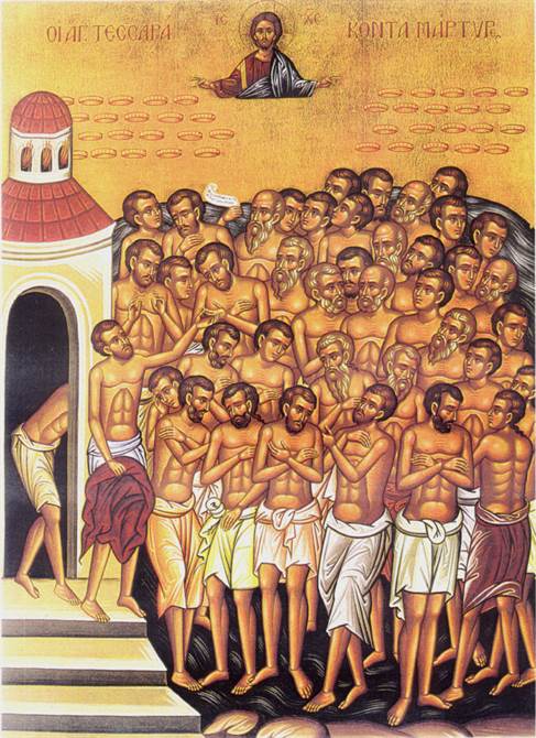 Creştinii ortodocşi îi sărbătoresc sâmbătă pe Sfinţii 40 de Mucenici, soldaţi români care pentru credinţa lor au fost omorâţi în vremea împăratului Licinius, din porunca guvernatorului Agricola, 9 martie fiind şi ziua în care s-a păstrat tradiţia de a se prepara şi împărţi mucenici, copţi sau fierţi.