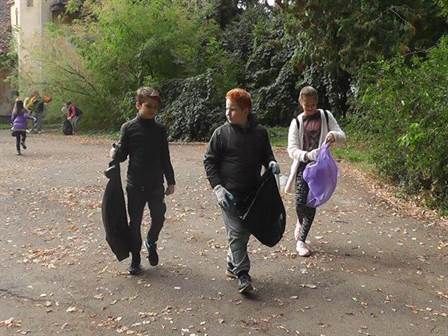 La sfârşitul activităţii pungile cu gunoi au fost depozitate în faţa fiecărei şcoli, iar după amiază o maşină s-a deplasat prin oraş pentru a strânge deşeurile.