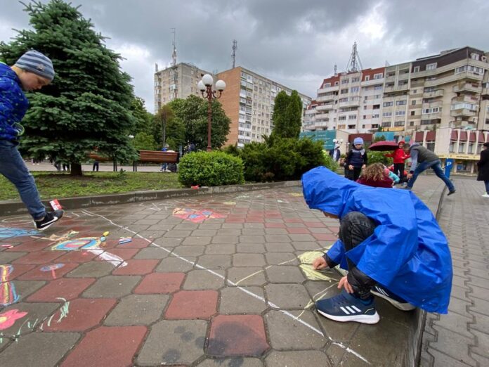 Copiii au participat entuziasmați la concursul de desene, hotorâți să-și expună creativitatea. Astfel, unii s-au adăpostit în spațiul special amenajat din interiorul Casei de Cultură, iar alții mai îndrăzneți au decis să dea culoare piațetei din centrul municipiului. Spațiul a devenit repede un furnicar plin de micuți, care s-au grăbit să traseze linii precise din cretă colorată.
