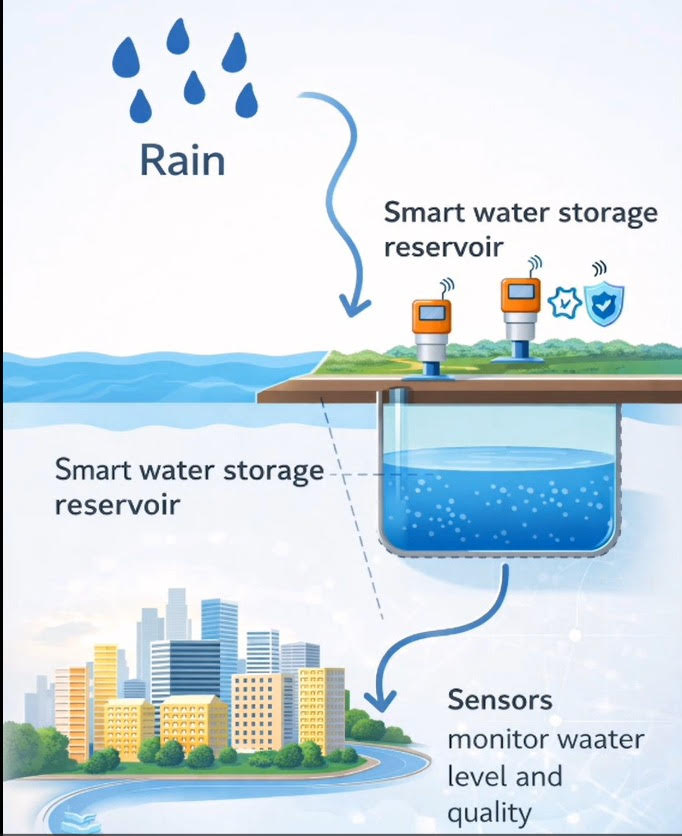 Proiectul realizat de eleve abordează problema gestionării resurselor de apă în contextul schimbărilor climatice și propune o soluție bazată pe rezervoare inteligente de stocare a apei, monitorizate cu ajutorul unor senzori digitali. Sistemul ar permite colectarea apei în perioadele cu debit ridicat și utilizarea acesteia în perioadele de secetă, contribuind astfel la stabilitatea alimentării cu apă a comunității.