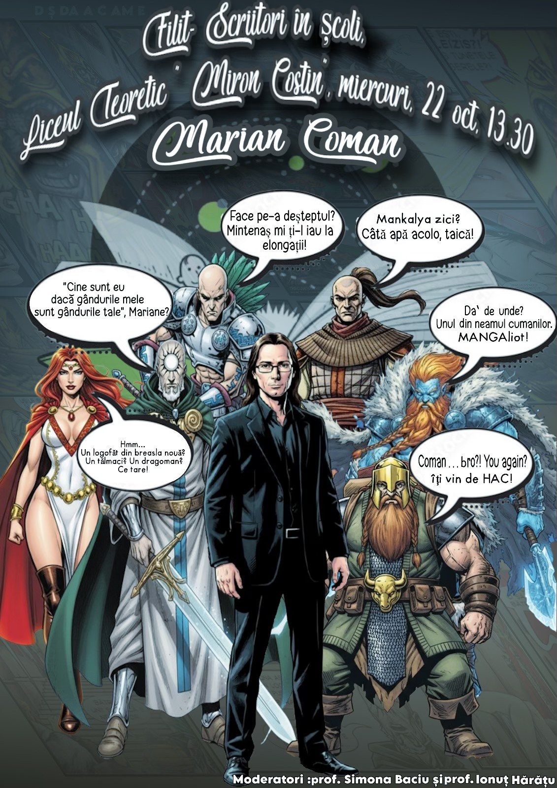 Moderatorii evenimentului sunt profesorii Simona Baciu și Ionuț Hărățu.