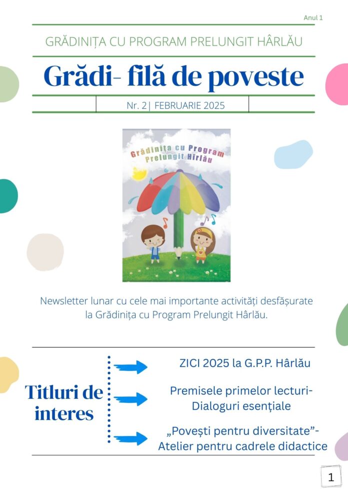 Proiect interesant la Grădinița cu Program Prelungit din orașul Hârlău. De curând, instituția a lansat newsletterul „Grădi-filă de poveste”, un spațiu dedicat părinților și comunității.