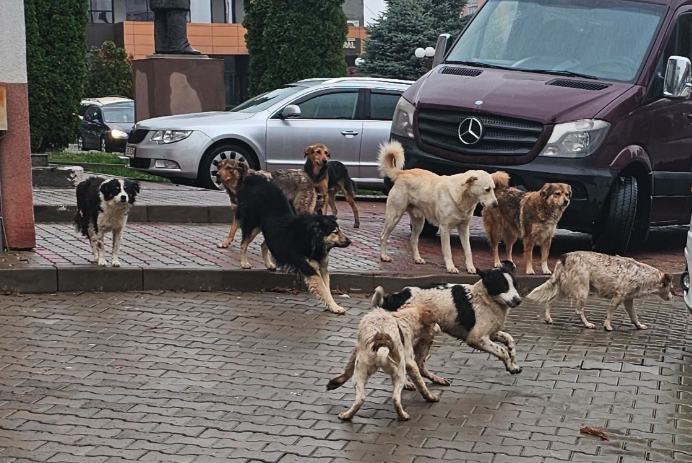 Într-o imagine surprinsă în fața Casei de Cultură „Mihail Sadoveanu”, pot fi văzuți aproape zece câini, iar într-o filmare distribuită online, mai multe animale se plimbă nestingherite pe străzile municipiului.