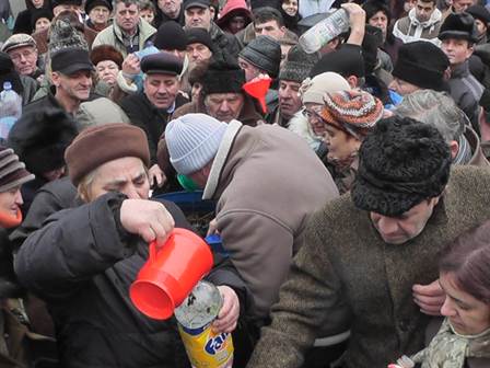 Imediat dupa ce apa a fost sfintita, credinciosii au dat buza catre butoiele imense cu aghiasma.