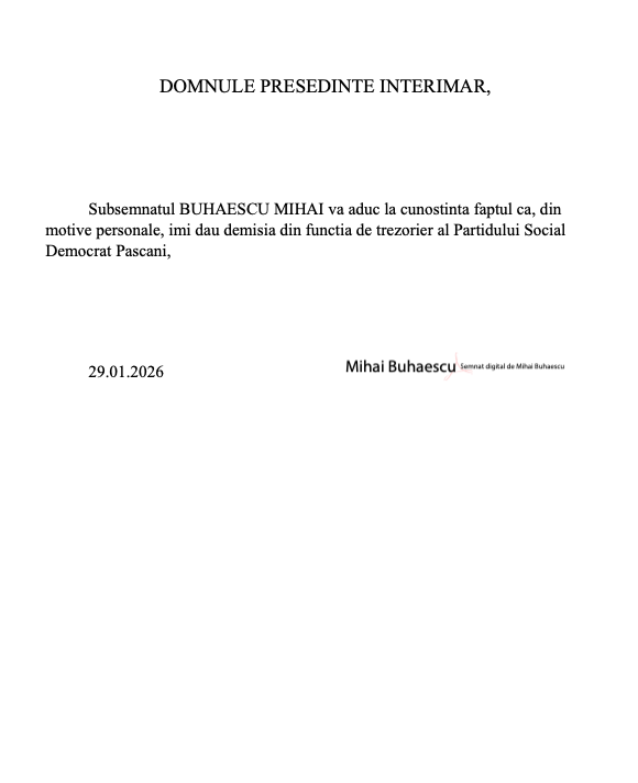 O nouă demisie la PSD Pașcani. Mihai Buhăiescu, unul dintre cei mai vechi membri ai organizației a renunțat la funcția de trezorier. Demisia a fost înaintată in cursul zilei de astăzi 29 ianuarie a.c., președintelui interimar, Dragoș Ionescu.