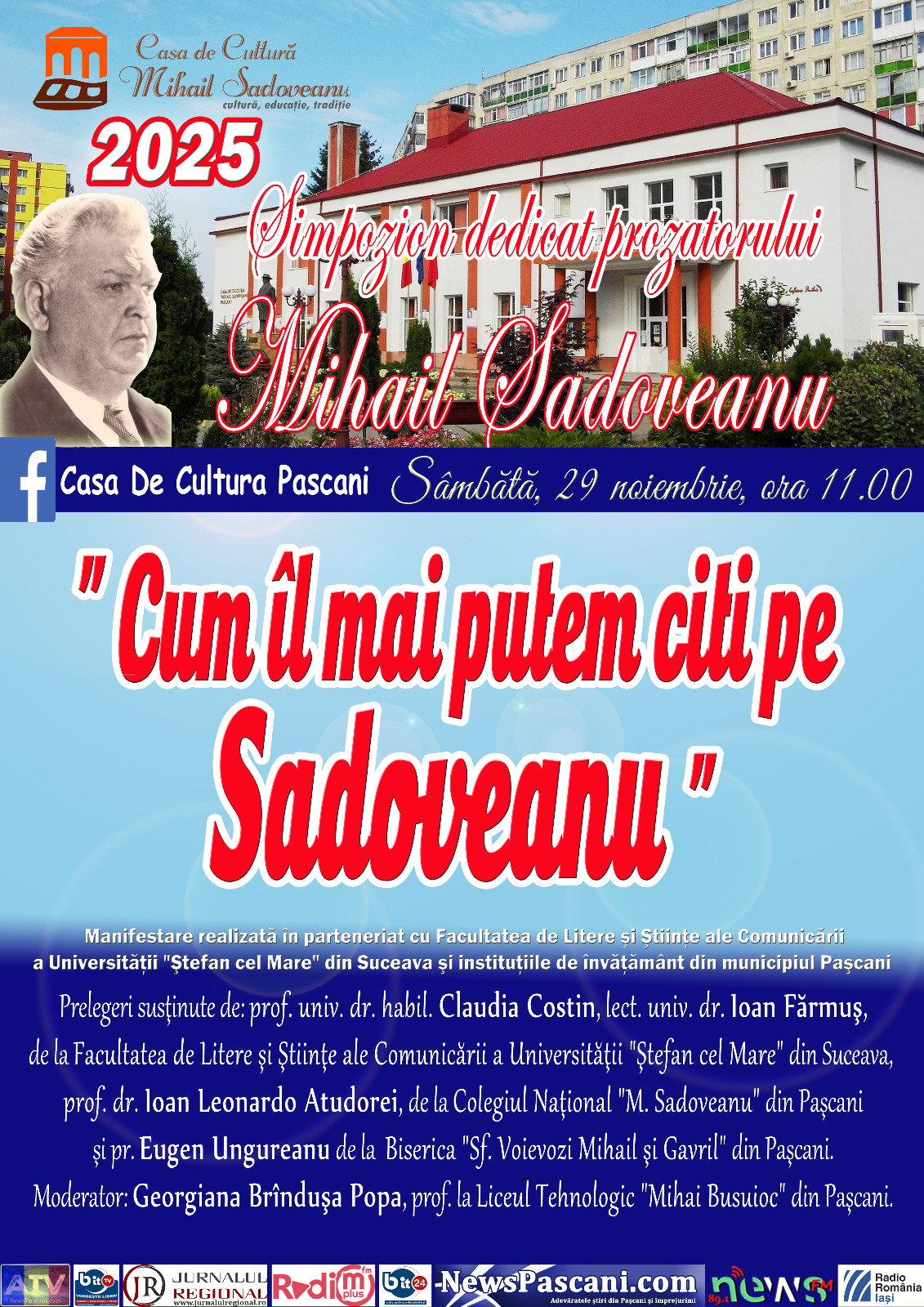 Sâmbătă, 29 noiembrie 2025, începând cu ora 11:00, sala Arcadia va găzdui cea de-a LIV-a ediție a Simpozionului „Sadoveanu”, un eveniment devenit tradiție în calendarul cultural al municipiului Pașcani. Manifestarea este organizată în parteneriat cu Facultatea de Litere și Științe ale Comunicării din cadrul Universității „Ștefan cel Mare” Suceava, alături de instituțiile de învățământ din Pașcani.