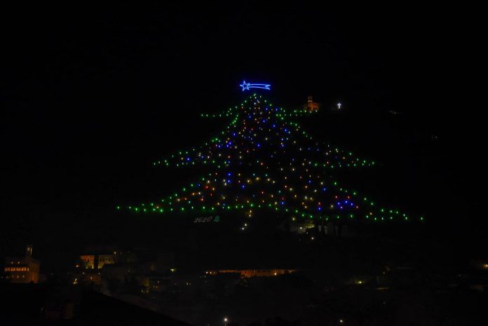Marți seara, a fost aprins cel mai mare pom de Crăciun din lume, amplasat pe o colină a munţilor Apenini, în apropierea oraşului italian Gubbio, și inaugurat în 1981.
