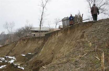 Alunecările de teren provocate de precipitaţii în lunile octombrie şi noiembrie 2016 au izolat mai multe familii după ce un drum comunal a fost afectat aproape în întregime, iar curţile oamenilor au fost inundate.