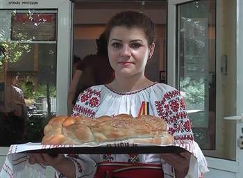 Cadrele didactice au fost primite la intrarea in scoala cu socata, paine si sare. Oaspetii au fost placuti impresionati si au facut fotografii cu elevele imbracate in costum traditional romanesc.