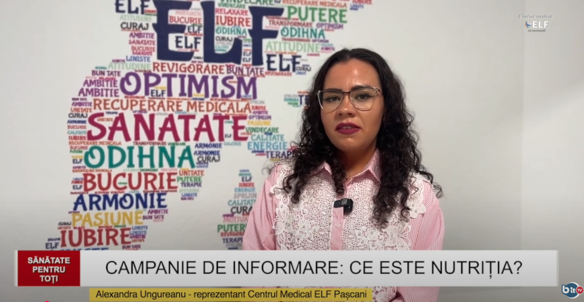 Postul local BIT TV Pașcani în parteneriat cu Centrul Medical ELF Pașcani începe o campanie de informare dedicată nutriției și stilului de viață sănătos. Timp de o săptămână, de luni până vineri, imediat după buletinul de știri, vă aducem informații esențiale pentru o viață echilibrată și sănătoasă, pe următoarele teme: