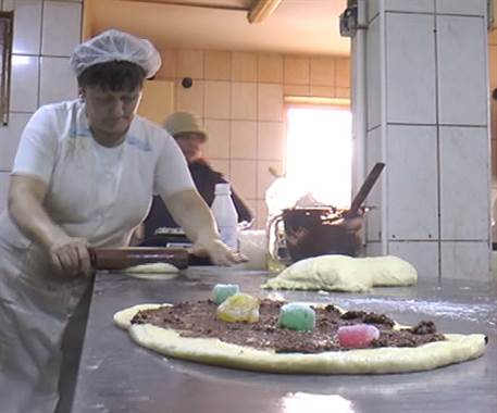 Miros dulce de cozonac si prajituri. Asa am fost intampinati la mica fabricuta din strada Dragos Voda 71 din Pascani. Aici, cateva femei faceau cozonaci si bezele si asezau in cutii prajiturile gata iesite din cuptor.