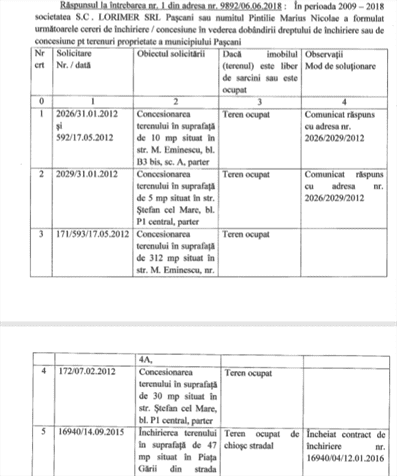 Sunt vizate 33 de persoane fizice și juridice care au pus stăpânire pe mai multe suprafețe și le folosesc fără plată și fără contracte de închiriere sau concesiune, începând din anii 2010 – 2013. Printre ele se află și una dintre societățile la care primarul Marius Pintilie este acționar. Firma sa, care ocupă mai multe suprafețe de teren din domeniul public fără contract, a fost notificată să plătească restanțe și penalități de peste 70.000 de lei. „Suma a fost achitată integral și imediat”, a spus edilul municipiului în cadrul unei conferințe de presă.