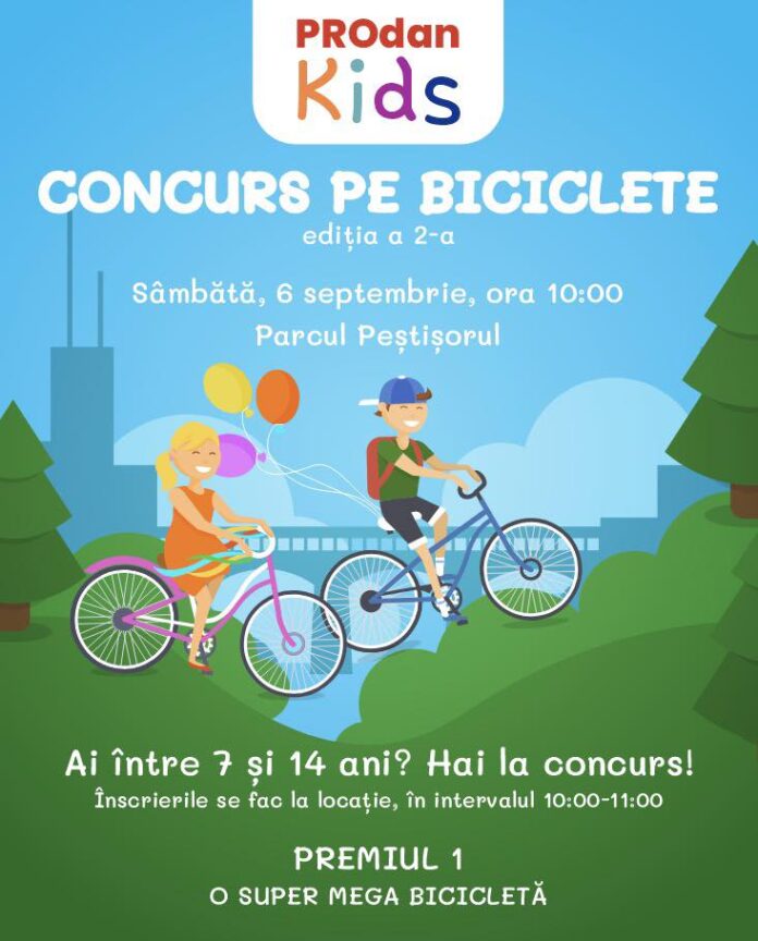 Invitație la concurs pe biciclete. Competiția intitulată ProdanKids este programată pe data de 6 septembrie, de la ora 10:00, în parcul Peștișorul. Sunt așteptați să se înscrie copii cu vârstele între 7 și 14 ani, iar câștigătorii vor fi recompensați cu premii, iar cel mai mare premiu va fi o super bicicletă.