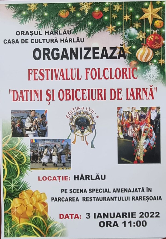 Anul nou va debuta la Hârlău cu o nouă ediție Festivalului folcloric „Obiceiuri și tradiții de iarnă”, festival ajuns la ediția a cea de-a 57 ediție.