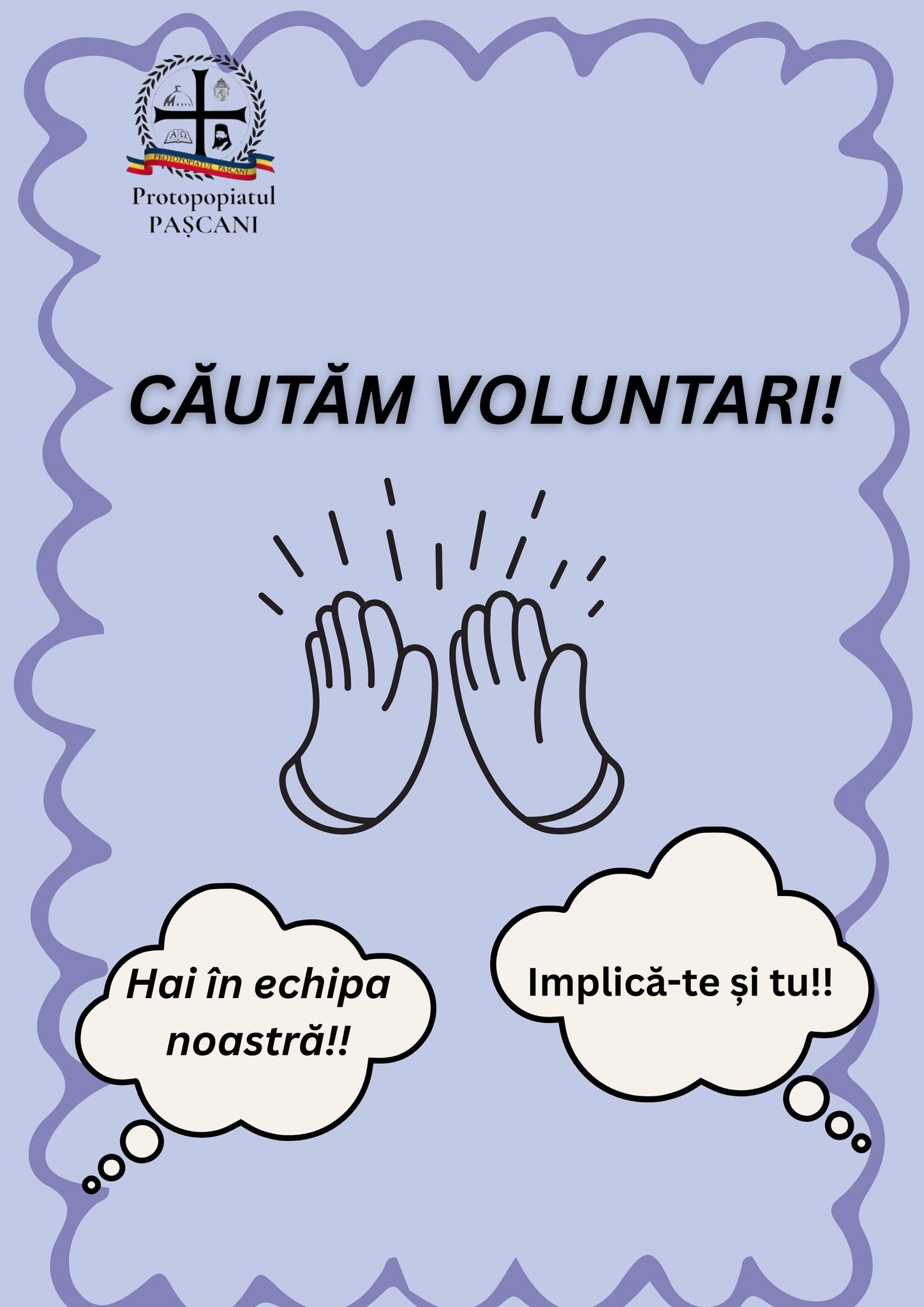 Protopopiatul Pașcani a lansat Departamentul de Voluntariat. Din acest motiv, în această perioadă se fac înscrieri pentru voluntari. Tinerii de toate vârstele se pot înscrie până pe 14 iulie, pentru a lua parte la binele făcut în comunitate.