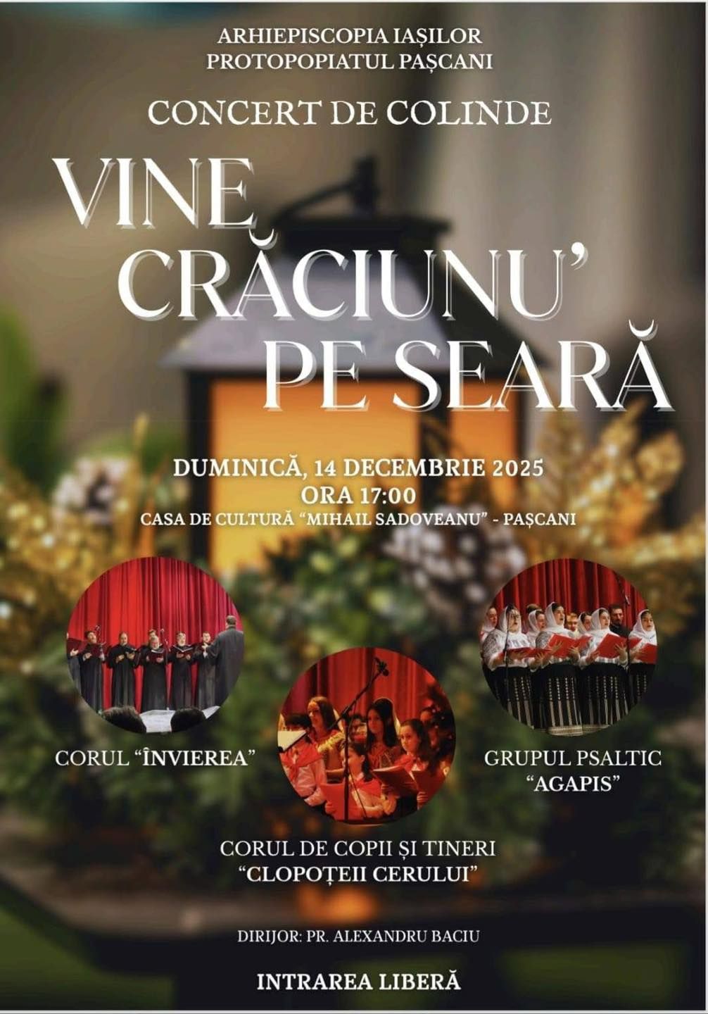 Protopopiatul Pașcani organizează duminică, 14 decembrie 2025, un concert de colinde dedicat începutului perioadei festive de iarnă. Evenimentul, intitulat „Vine Crăciunu’ pe seară”, va avea loc la Casa de Cultură din municipiu, începând cu ora 17:00, iar intrarea este liberă.