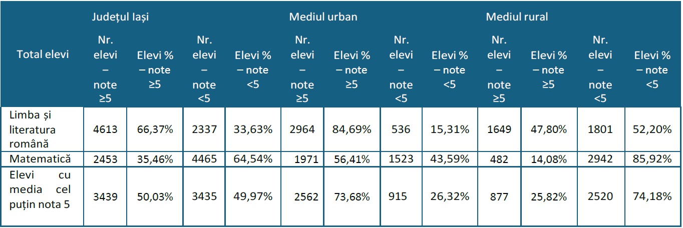 „Așa cum era de așteptat, analiza rezultatelor relevă decalaje semnificative între mediul urban și cel rural, atât în privința performanțelor generale, cât și a prezenței la simulare. Această diferență, constantă în evaluările naționale, subliniază nevoia unor măsuri suplimentare de sprijin și adaptare a strategiilor educaționale pentru a reduce decalajele”, se arată în raportul ISJ Iași.