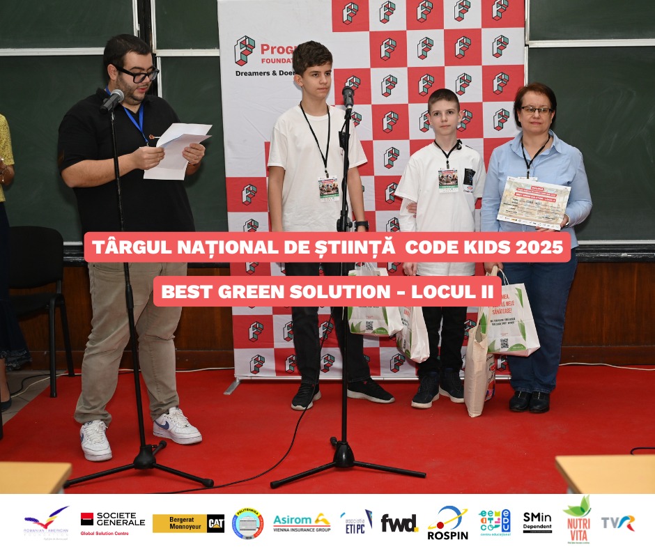 Dionisie Cojocaru și Darius Rusu, coordonați de Mihaela Cojocaru, au reușit să obțină locul II, la secțiunea Best Green Solution.