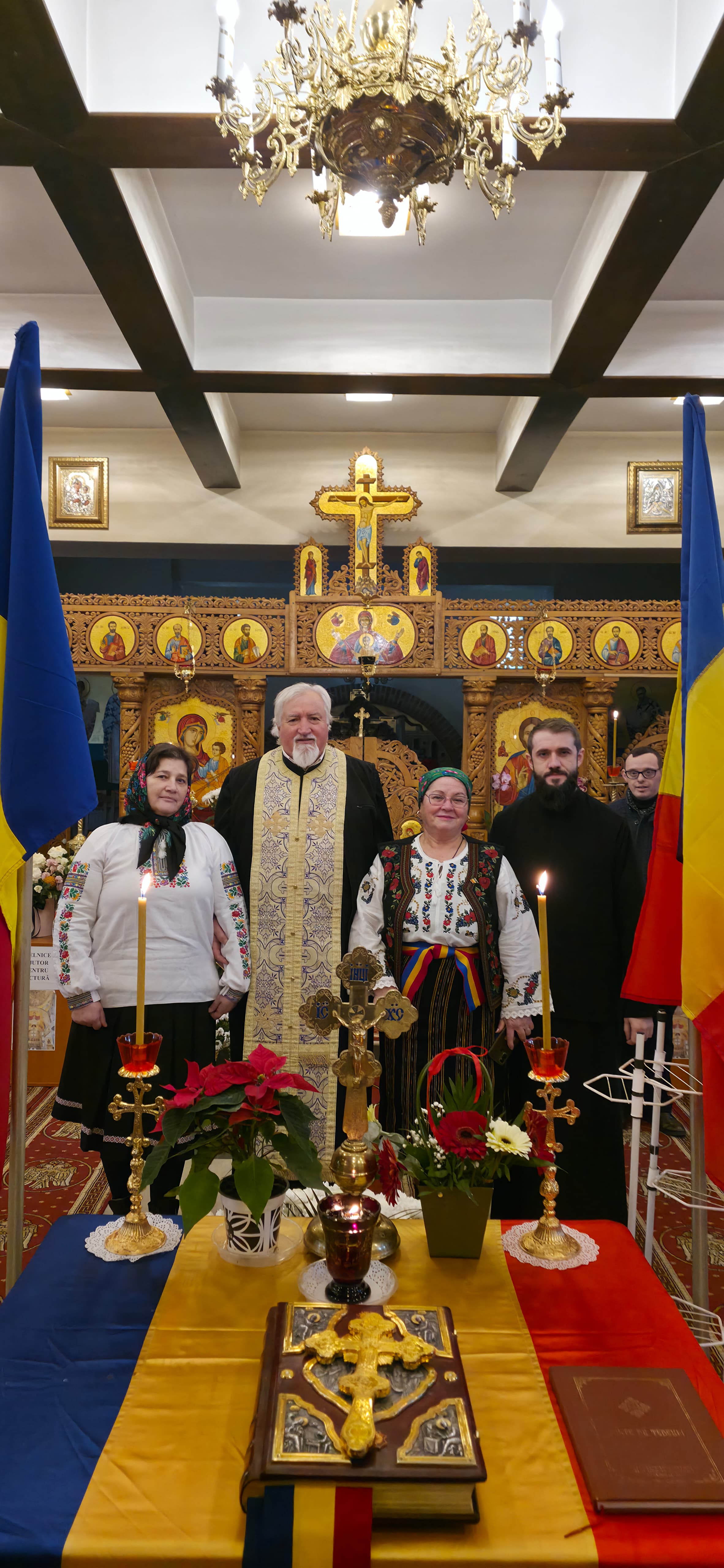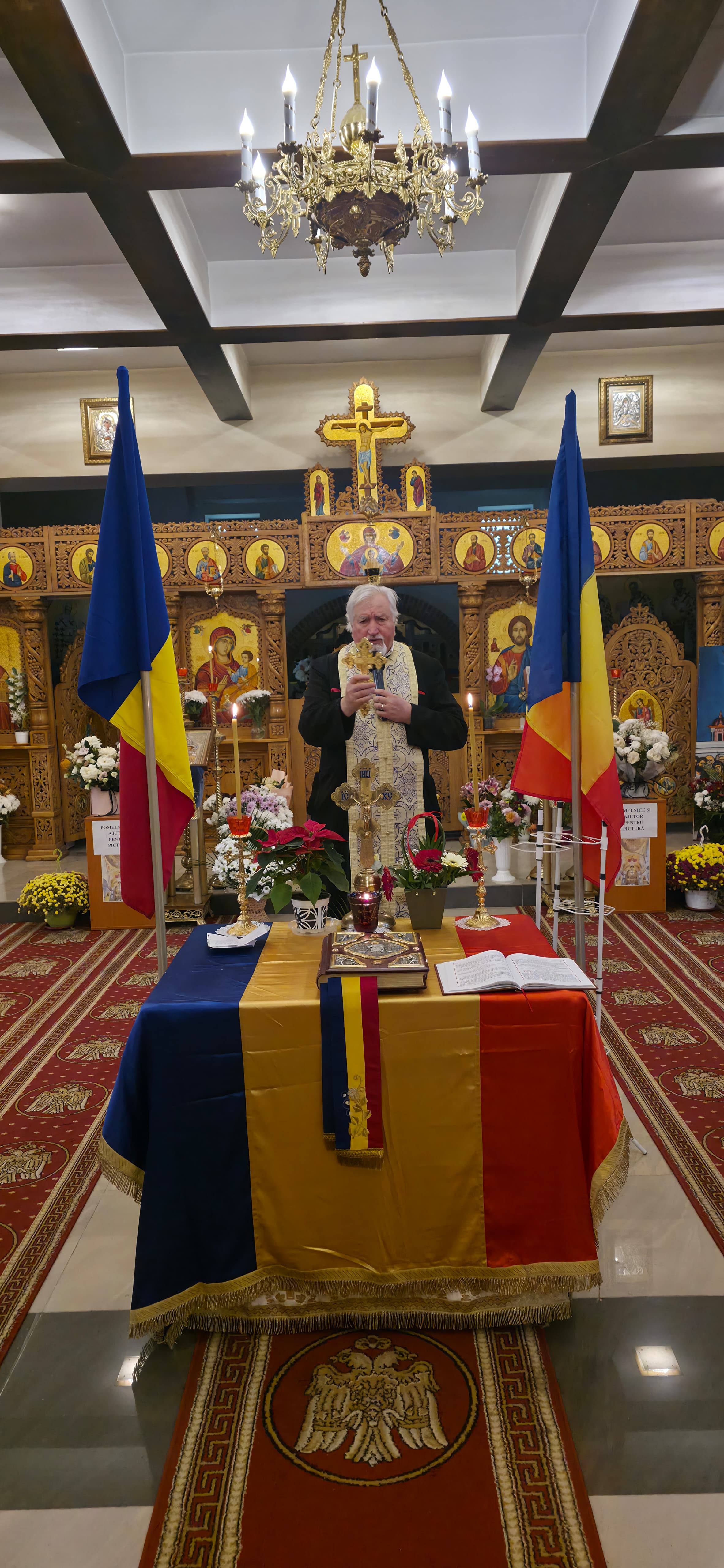 Am citit Acatistul Mântuitorului, apoi am săvârșit Tedeumul de Ziua Națională, rugându-ne pentru România, pentru conducătorii ei, pentru armata țării, pentru toți românii de aici și de pretutindeni, dar și pentru odihna strămoșilor noștri care, cu jertfă și credință, au păstrat vie această vatră de lumină ortodoxă.