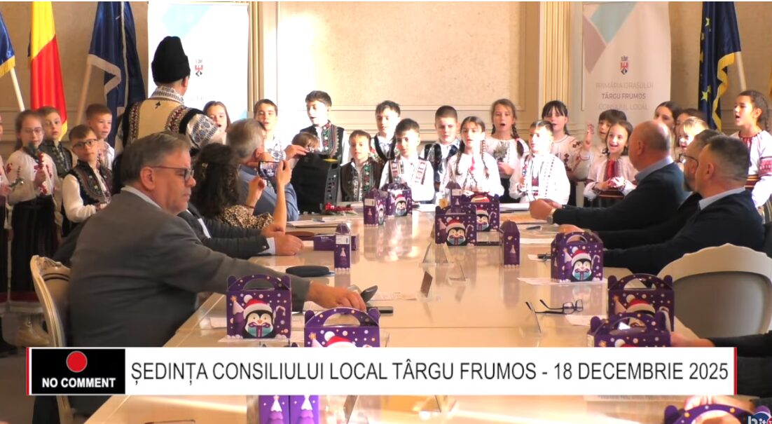 ȘEDINȚA CONSILIULUI LOCAL TÂRGU FRUMOS – 18 DECEMBRIE 2025. În cadrul festiv, aleșii locali au primit și colindători – VIDEO