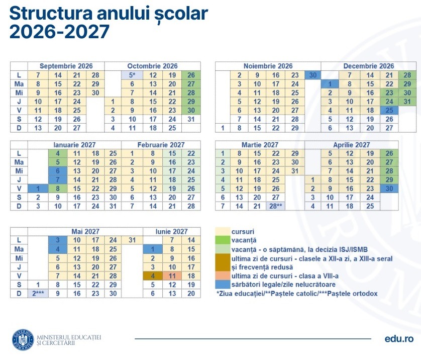 Calendarul anului școlar 2026-2027