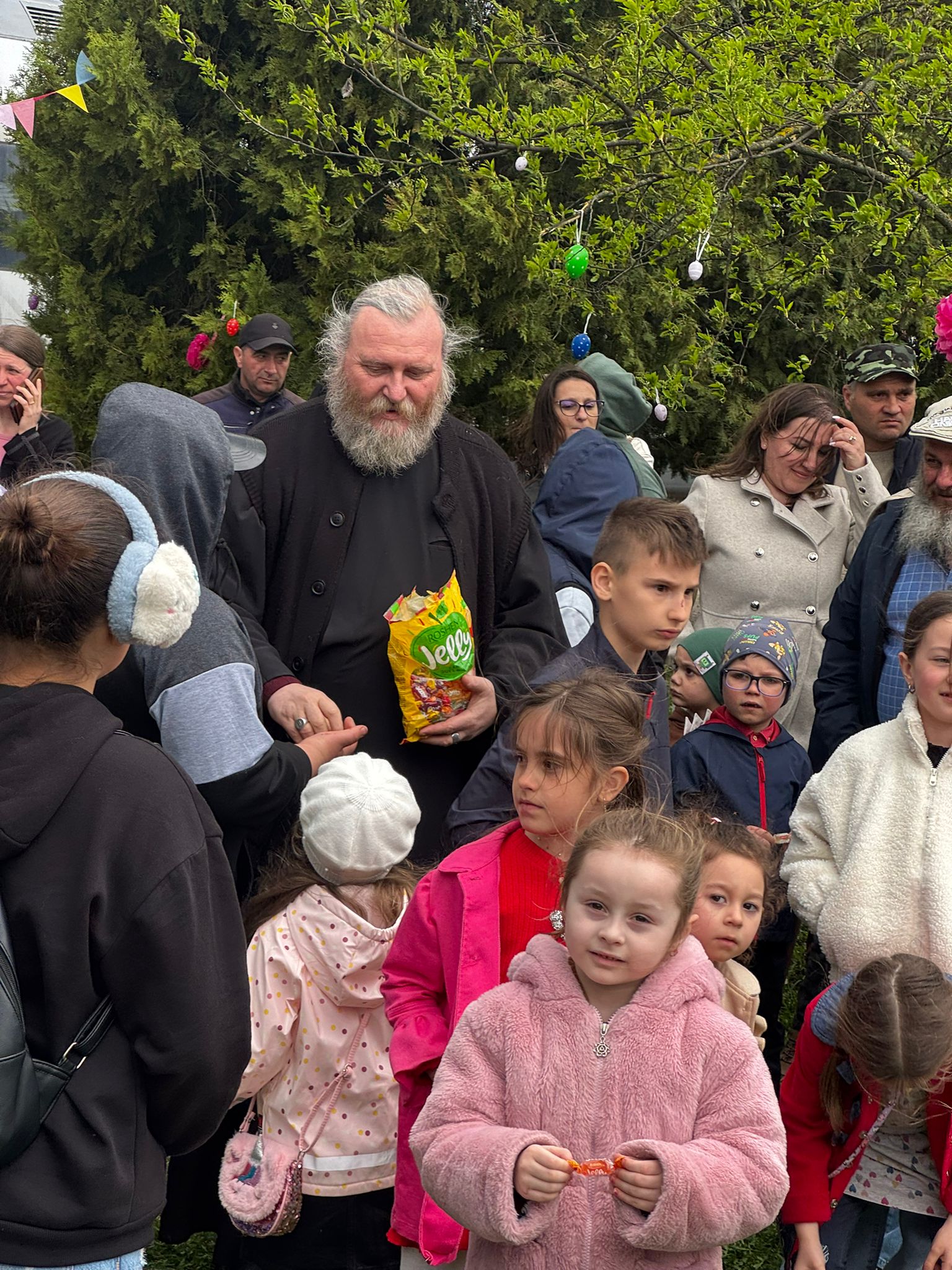 „În mijlocul nostru a venit părintele ce a adus binecuvântări și le-a vorbit copiilor despre încărcătura spirituală a acestor zile cât și despre sărbătoarea Învierii Domnului!
