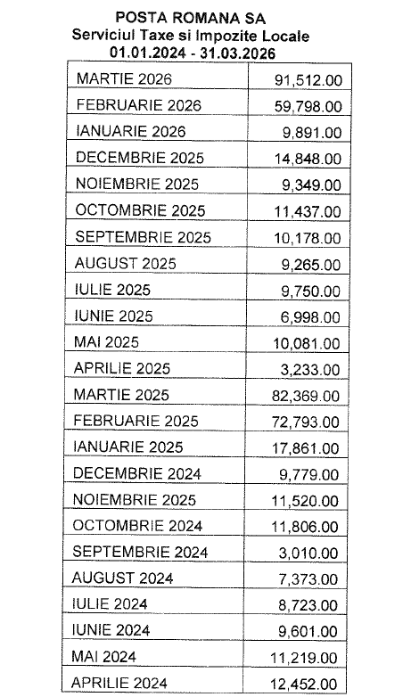 Dacă vă întrebați pe ce mai sunt cheltuiți banii dvs. și de ce ar trebui publicat, înainte de votarea bugetelor, Programul anual de achiziții publice pentru bunuri și servicii, iată un nou exemplu. În primele trei luni ale anului în curs, administrația locală a cheltuit pentru servicii poștale peste 161.000 lei, iar anul trecut 258.000 lei. Cheltuieli la fel de mari au fost înregistrate și în anul 2024, de peste 240.000 lei, pentru corespondența Serviciului Taxe și Impozite locale, în principal pentru trimiterea declarațiilor de impunere pentru plata taxelor și impozitelor locale.