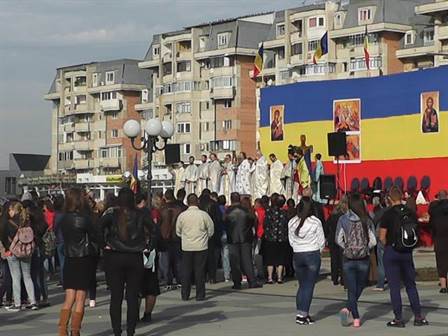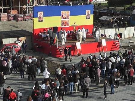Sute de tineri la slujba oficiată la Catedrala în construcții din Pașcani. Astăzi, 1 octombrie, începând cu ora 8.00, sute de tineri și-au dat întâlnire pe platoul din fața Catedralei “Pogorârea Sf. Duh” din Pașcani pentru a participa la slujba religioasă dedicată lor. Pe scena amenajată în fața construcției au urcat 12 preoți care au oficiat litughia împreună cu protopopul Pavel Postolachi dar și preoți de la Mitropolia din Iași.