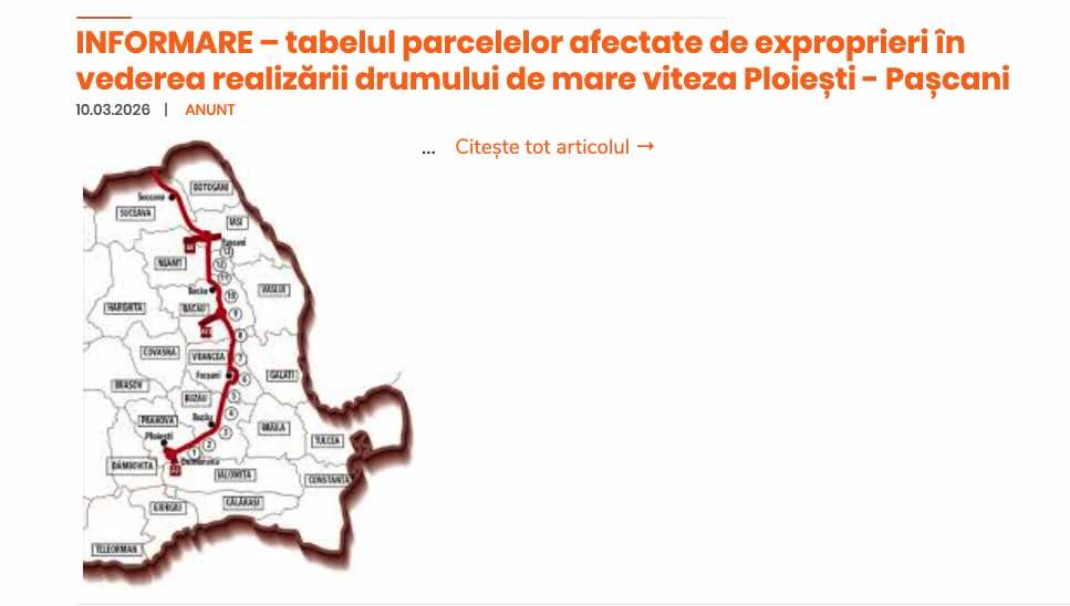 Tabelul parcelelor afectate de exproprieri Ploiești – Pașcani