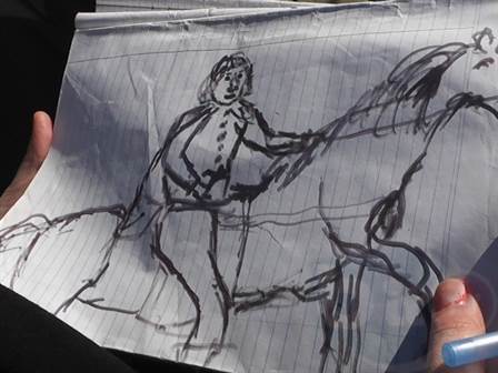Pe la jumătate lucrării, soția i-a propus să-l facă pe voievodul Ștefan cel Mare, alături fiindu-i mama lui. Nici așa nu s-a concretizat lucrarea. Așa că bărbatul e hotărât să-l facă pe Mihai Viteazu. Pe lângă statuia în mărime naturală se află și o fântână arteziană. Pentru construcția acesteia a fost ajutat. E mândru de ceea ce a realizat, iar costurile au fost mici.