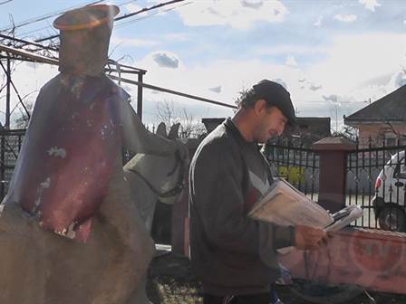 Cum mergi pe strada Mihai Viteazu din suburbia Lunca Pașcani, vezi o statuie în curtea unei familii. Pășcăneanul lucrează la ea din primăvara anului trecut, când are timp liber. A pornit cu ideea să-l facă pe Sfântul Gheorghe călare pe cal străpungând cu sulița un balaur. Mai ales că a fost susținut și de preotul din suburbie care slujește la biserica ce poarta hramul acestui sfânt.