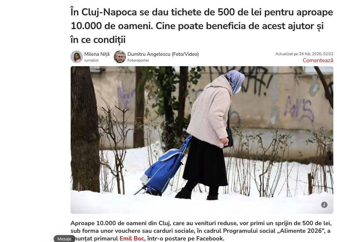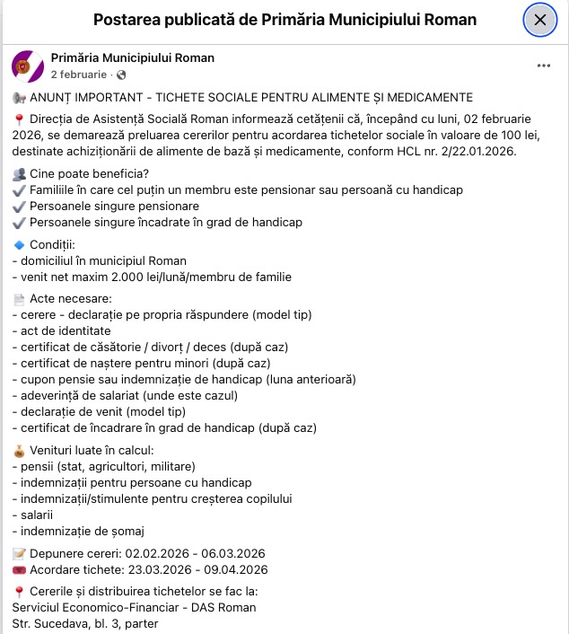 Menționăm că astfel de tichete au fost și sunt date persoanelor cu venituri mici de mai multe primării din țară. Spre exemplu, Primăria municipiului Roman a anunțat pe 2 februarie că oferă tichete sociale pentru alimente și medicamente în valoare de 100 de lei pensionarilor singuri, persoanelor cu handicap și familiilor în care este cel puțin un membru pensionar sau cu handicap.