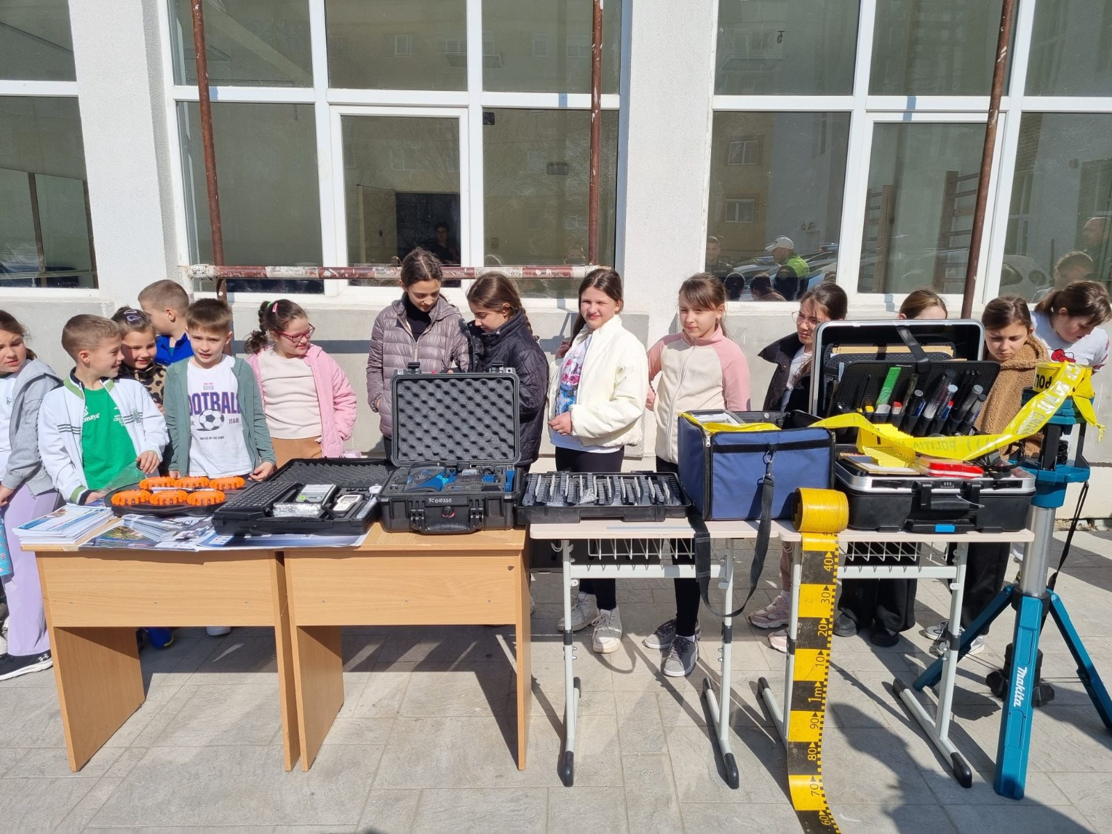 Specialiștii din cadrul compartimentului de criminalistică au prezentat tehnica și trusa specifică utilizată la cercetarea locului faptei, oferind explicații detaliate despre modul de colectare a probelor.