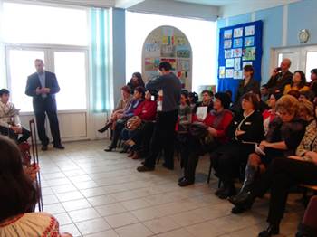 Toate persoanele care au calcat pragul unitatii scolare au fost primite cu paine si sare de catre o eleva imbracata in port popular traditional.